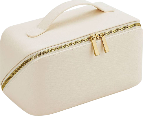 Beauty in ecopelle, chiusura con zip dorata. Scomaprto interno centrale con zip e taschina laterale con zip. Molto capiente. Manico per maggiore comodità.