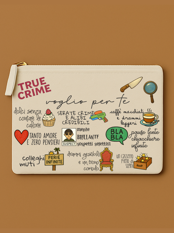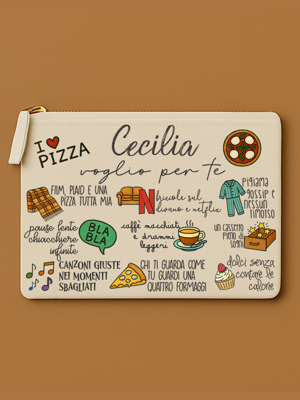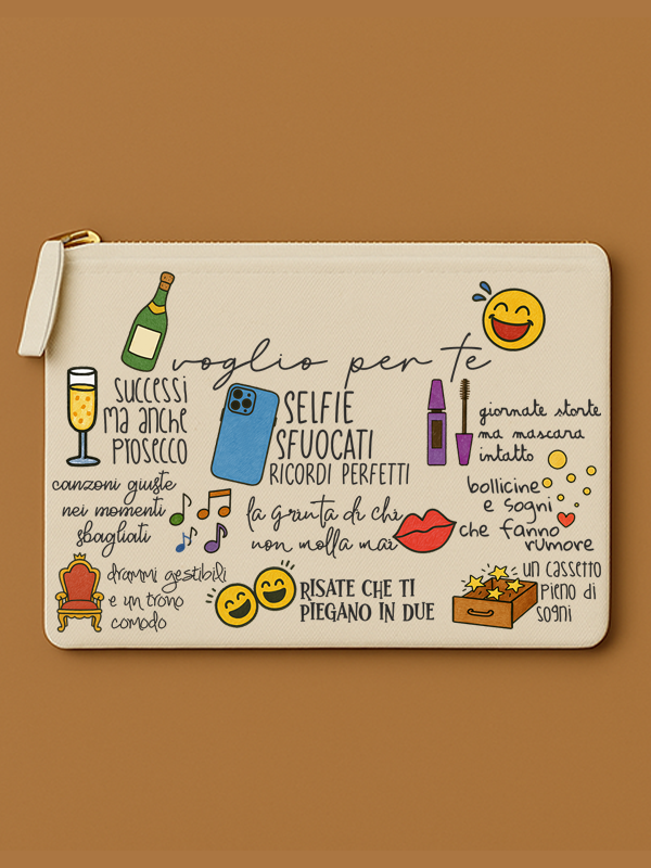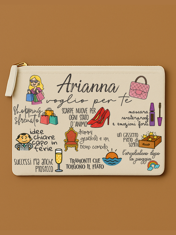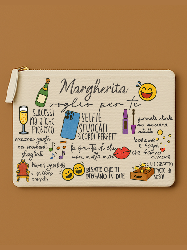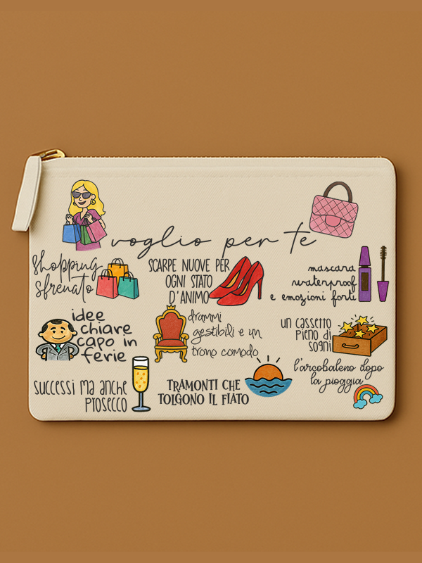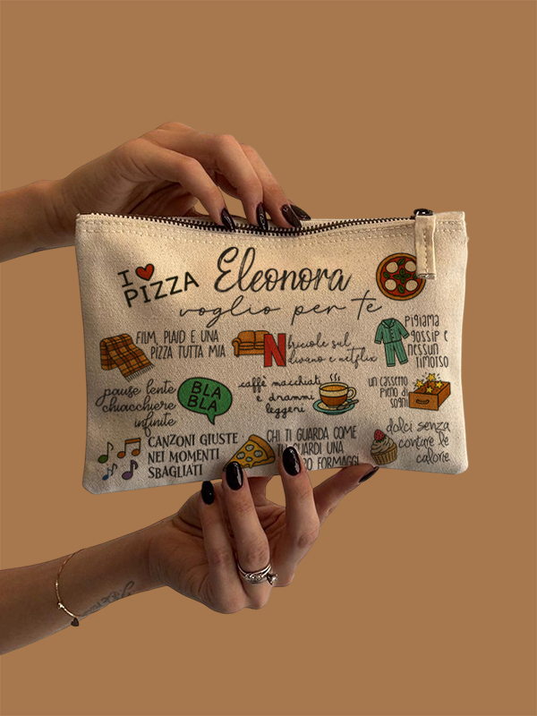 Chiusura con zip in metallo antracite. Utile e compatta per tutti i tuoi oggetti essenziali!