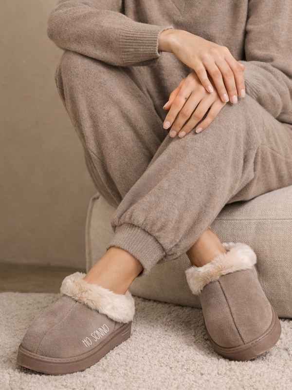 Comode pantofole molto calde con interno in eco-pelliccia.