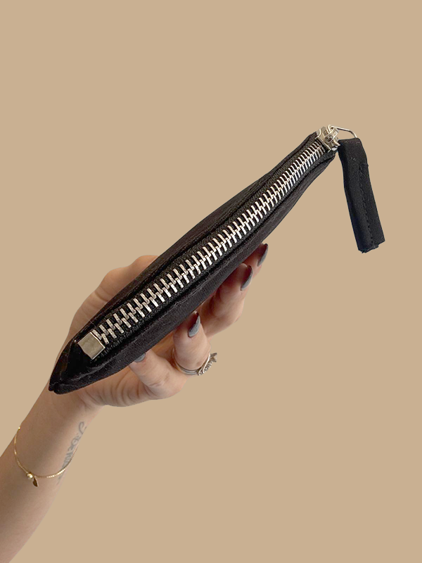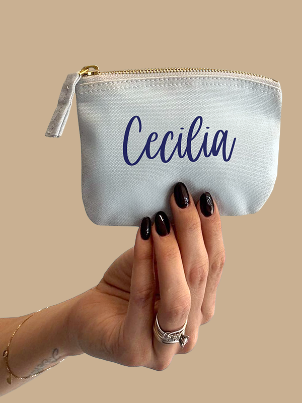 Pochette in cotone personalizzabile con nome o iniziali. Chiusura con zip in metallo.