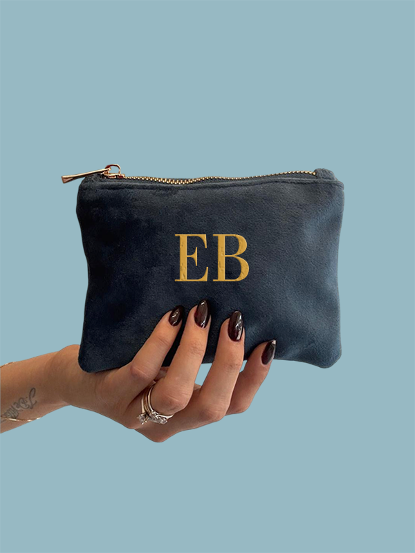 Mini pochette in effetto velluto. Foderata internamente, chiusura con zip dorata.