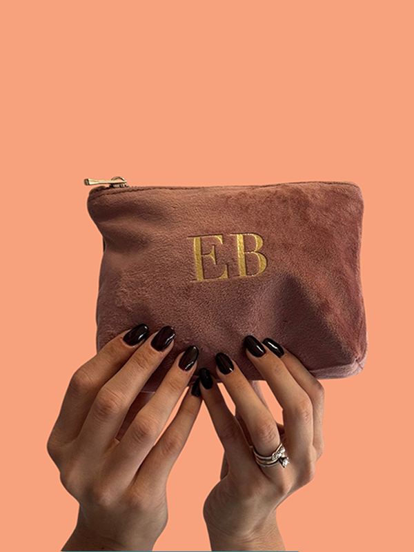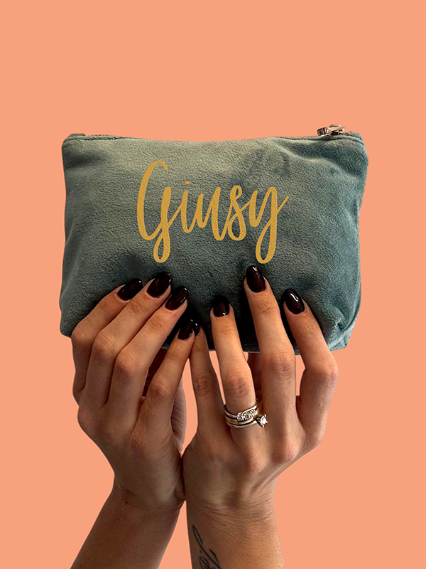 Pochette con soffietto mini, effetto velluto. Foderata internamente, chiusura con zip oro.
